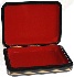 The box is constructed from paper-mache. Black lacquer is used to paint the exterior of the box while red lacquer completes the interior of the work. The lid is hinged from the left of the portrait, and the box rests on a flat bottom. The work is signed with the artist's name.