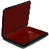 The box is constructed from paper-mache. Black lacquer is used to paint the exterior of the box while red lacquer completes the interior of the work. The lid is hinged from the left of the portrait, and the box rests on a flat bottom. The work is signed with the artist's name.