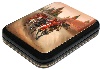 The scene is framed with a gold line; the box's sides are decorated with two parallel gold lines.