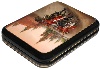 This beautiful piece of authentic Russian craftsmanship was created by Yuliya Golubyonkova from the village of Mstera. The composition depicts the detachment of falconers riding along Red Square.