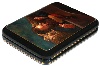 The box is constructed out of paper-mache. Black lacquer covers the exterior and red lacquer covers the interior of the box. The box has a hinge from the left of the portrait, and rests on a flat bottom. Signed with the artist's name, and the year of 2009.