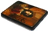 The scene is framed with a gold line; the box's sides are decorated with two parallel gold lines.