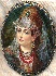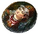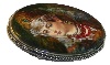 Description: Valentinf Maslova from the village of Fedoskino is the creator of this splendid brooch. On the oval piece of mother-of-pearl the artist has painted her interpretation of the oil on canvas painting originally painted in the 1900s by Konstantin Makovsky. Named “Boyaryshnya”, this masterpiece is kept in the private collection.