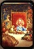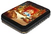 Description: This attractive box that shows the little Princess having a breakfast together with her tortoise is a creation of Oleg Golov. The girl sits at the big table filled with delicious food. At the background the artist has painted the rich, medieval