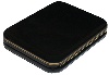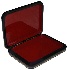 The box is constructed from paper-mache. Black lacquer is used to paint the exterior of the box while red lacquer completes the interior of the work. The lid is hinged from the left of the scene, and the box rests on a flat bottom. The work is signed with the artist's name.