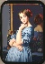 The portrait is framed with a gold line; two parallel gold lines decorate the box's sides.