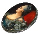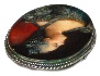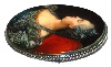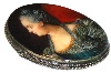 Description: Valentina Maslova from the village of Fedoskino is a talented artist who painted this beautiful brooch. On the oval piece of mother-of-pearl the artist has painted her interpretation of the world famous portrait of Catherine II the Great. The portrait is based on Aleksey Antropov's oil on canvas, painted in 1766. Antropov's Masterpiece is kept in the Novgorod Art and History Museum, town of Novgorod, Russia.