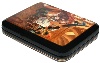 The scene is framed with a gold line; the box's sides are decorated with two parallel gold lines.