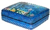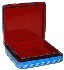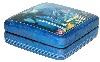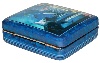 The box's exterior imitates a stone color: light grey veins are scattered against the blue-silver background. The interior is traditionally covered with red lacquer.