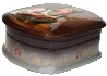 The exterior of the box is dark brown, while its interior is traditionally red.