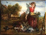 Description: This idyllic scene has been painted by Tatiana Gomzina from the village of Fedoskino. Here we can see a nice peasant girl feeding hens. Tender emotions are reflected on her face.