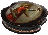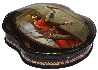 Description: This brilliant example of Fedoskino realism has been created by Boris Shavyrin. The box shows the full-length portrait of a falconer admiring his bird. In old Russia falconers had to supply game to the tsar's court and got some benefits therefore. The background is filled with Russian medieval architecture.