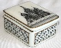 Description: This box has been painted by the famous Fedoskino artist, Vladimir Rogatov. It shows the picturesque view of St. Basil's Cathedral. This gem of ancient Russian architecture was built by order of Ivan the Terrible in 1561 to commemorate to the victory over Kazan and Astrakhan Khanate. In front of the St. Basil's Cathedral you can see the monument to Minin and Pozharsky.