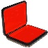 The box is made out of paper-mache. Black lacquer covers the exterior and red lacquer covers the interior of the box. The box has a hinge from the left of the scene, and rests on a flat bottom. The work is signed by the artist.