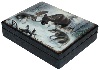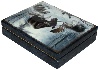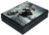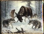 Boris Shavyrin is the author this exquisite box. The hunting scene that is a traditional subject in the Fedoskino lacquered art has been chosen as a theme for this work. The box depicts the hunting scene in the winter forest. Three wolves attack the elk, ready to tear the doomed animal to pieces.