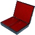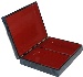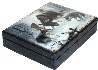 The scene is framed with two parallel gold lines completed in the corners with beautiful scrollwork. The box's exterior imitates the color of grey marble. The interior is separated into two sections, and covered with red lacquer.