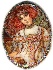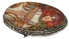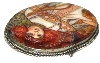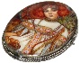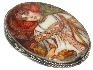 On the oval piece of mother-of-pearl the artist has painted the gorgeous reproduction of the painting "Autumn" by Alphonse Mucha, the famous ART NOUVEAU artist! Mother-of-pearl shines beautifully through the oils and creates a sparkle of the woman's costume and the background!