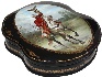 Description: Boris Shavirin from the village of Fedoskino painted this magnificent box featuring a hunting scene. Falconer is a post in the household of Grand Princess. Falconers had to supply game to the Tsar's court and got some benefits therefore.