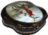 The oval scene is framed with very beautiful filigree patterns. The same patterns wrap around the box's sides. The edges of the lid are also decorated with original gold ornamentation.