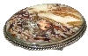Description: Valentina Maslova from the town of Dmitrov has been painted this splendid brooch. On the oval piece of mother-of-pearl the artist has painted the gorgeous reproduction of the painting "Winter" by Alphonse Mucha, the famous ART NOUVEAU artist! Mother-of-pearl shines beautifully through the oils and creates a sparkle of the woman's costume and the background!