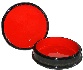 The box is constructed from paper-mache. Black lacquer is used to paint the exterior of the box while red lacquer completes the interior of the work. The lid isn't hinged, and the box rests on a flat bottom. The work is signed with the artist's name, and the village of Fedoskino.