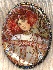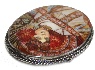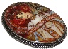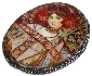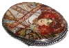 On the oval piece of mother-of-pearl the artist has painted the gorgeous reproduction of the painting "Autumn" by Alphonse Mucha, the famous ART NOUVEAU artist! Mother-of-pearl shines beautifully through the oils and creates a sparkle of the woman's costume and the background!