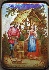 The palette is based on earthtones that help to reproduce a rural landscape. Green and brown tones of the landscape contrast beautifully with the bluish golden sky and with bright red, blue and green tones of the characters' clothes. Aluminum powder was used to enhance the color of the sky and the girl's sarafan. This decorative material adds glowing and natural light to the piece. The two characters are drawn very naturally and with a great amount of feeling. The surrounding landscape also look quiet realistic.