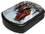 Description: This splendidly painted box is a creation of Boris Shavirin from the village of Fedoskino. The work is painted on a historical subject because the action takes place in the seventeenth century in Moscow. The handsome young man tries to flirt with the pretty boyarynya but her strict mother stops flirtation with swearwords addressed to him.