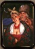 Description: This splendid piece of Russian artistry was painted by Pavel Govorun from the village of Fedoskino. It shows a scene from Nikolay's Gogol's literary work "The night before Christmas" . This work was included into the famous book of collected stories called "The Evenings in the Village situated not far from Dikanka" written by the same writer. This book was created in the beginning of the nineteenth century and at once became the best seller. It was composed of mystical fairy-tales and horror stories written in the folk style.
