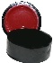 The box is made out of paper-mache. Black lacquer covers the exterior and red lacquer covers the interior of the box. The lid isn't hinged and the box rests on a flat bottom. The work is signed with the artist's name, Fedoskino, and the year of 2000.