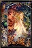 The scene is painted in bright surrealistic colors. Shining pieces of gold metal leaves that can be found in the plants are used to strengthen the festive and miraculous atmosphere of the painting.