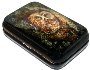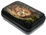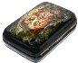 Description: Danchenko Taisiya is the talented Fedoskino artist who painted this alluring box. It shows the Hawk Owl peeping out of the hollow. The owl is painted in the realistic style over the gold background. The trunk of the tree is highlighted with a gold paint.