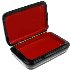 The box is constructed of paper-mache. Black lacquer covers the exterior and red lacquer covers the interior of the work. The lid is hinged from the left, and the box rests on a flat bottom. The work is signed with the artist's name, the village of Fedoskino,and the title ("The Hawk") on the box's exterior bottom.