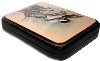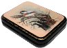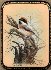 Description: Medvedeva from the village of Fedoskino is fond of birds, and has created a series of works painted on this theme. Here she has depicted a Woodchat Shrike sitting on the tree. The noble scarlet feathering of the depicted bird contrast beautifully with the delicate, peach background and the brown color of the tree. Aluminum powder shines in the middle of the scene to focus the viewer's attention on the depicted bird.