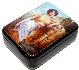 Description: Talented artist and a teacher from the village of Fedoskino Golovchonkov Oleg has created this attractive box. It features the portrait of a Greek young lady with tambourine in her hand staying at a porch with a fur. Exceptional technique and masterful skill are needed to create this work. It is as entrancing as it is traditional.