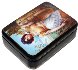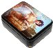 The portrait is framed with a thin gold line. Two parallel gold lines wrap around the box's sides.
