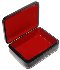 The box is constructed from paper-mache. Black lacquer is used to paint the exterior of the box while red lacquer completes the interior of the work. The lid is hinged from the left of the portrait, and the box rests on a flat bottom. The work is signed with the artist's initials G.O.