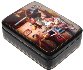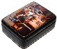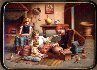 Description: This idyllic scene has been painted by Ekaterina Marochkina from the village of Fedoskino. Here we can see the happy family feeding a Turkey. Tender emotions are reflected on their faces. It's very hard to reproduce people's feelings painting with an ultra-fine brush. The interior of the room is filled with a lot of brilliantly painted details including the jars, the fire-place with the burning fire inside, various kitchen utensils hanging on the walls that make the composition complex and complete.