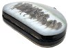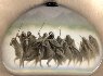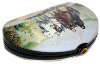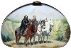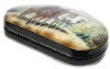 The scene is painted in subdued oil paints. The scenes are framed with parallel gold lines. Box shape of the box is remind us a purse. On the top of the box we can see a painted ring.