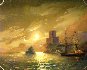 This attractive sea composition is a creation of the famous Fedoskino artist Alexey Valyalin. During his vacation at the Black Sea, he visited the Museum of Art in Feodosia (Crimea, Ukraine), and was greatly impressed by the paintings of the great Russian seascape painter, Ivan Aivazovsky. This occasion influenced his decision to become an artist and paint seascapes.Later, in his youth he served in the navy, and this fact may explain his love towards the sea and ships also.