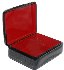 The box is made out of paper-mache. Black lacquer covers the exterior and red lacquer covers the interior of the box. The box has a hinge from the top of the scene, and rests on flat buttom. The work is signed by the artist.