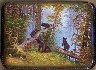 "Morning in the Woods" as this work is entitled was originally painted on canvas by Ivan Shishkin. Exhibited in the Moscow's Tretyakov Gallery, it is one of the most popular pieces viewed in the entire museum. It has become something of a national symbol for Russia, which lacquer miniature artists were quick to adopt into their work.