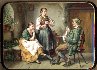 Here the artist has chosen to paint the room with a woman and her daughter and a man. Female faces reflects their emotions : a woman is listening to a man while a younger lady is spinning the wool line, which is coming from the man's hands. Various details of this composition-like cloths of the characters are painstakingly painted with a lot of diminutive details. The way the artist paint the shadows is a splendid example of the artist's gift for realism. Everything here is so brilliantly painted that this box is worthy of being exhibited in the museum.