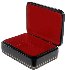 The box is constructed from paper-mache. Black lacquer is used to paint the exterior of the piece while deep red lacquer completes the interior of the box. A hinge is fastened to the top of the composition, and the box rests on legs. The work is signed by the artist, "Morning" and dated (2011).
