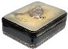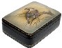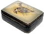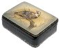 Description: Talented Artist Mashkova from the village of Fedoskino is fond of birds, and has created a series of works painted on this theme. Here she has depicted a Hazel-grouse sitting on the branch of a tree. The black and broze feathering of the depicted bird beautifully looks with the delicate light bronze background. Aluminum/bronze powder shines in the middle of the scene to focus the viewer's attention on the depicted bird!