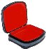 The box is constructed from paper-mache. Black lacquer is used to paint the exterior of the box while red lacquer completes the interior of the work. The lid is hinged from the top of the composition, and the box rests on four wavy legs. The work is signed with the artist's name, and the year of 2011.