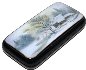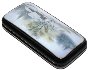 The scene is painted in white and light grey oils suitable for reproduction of a dull winter day. Mother-of-pear is set into the sky to create a golden glow of the sunset, and to enliven the scene.