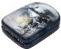The scene is bright and radiant as besides of various shades of light blue oils the artist has used here gold metal paint and a piece of mother-of-peal.A piece of mother-of-pearl is set into the middle part of the scene, so the sky is shining through the trees and makes the box look more appealing!
