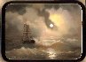 Oil-based paint is the primary medium used to paint this scene. The colors used to paint this scene reflect the marine and aquatic environment captured in the composition. The cool palette is soothing, even though a storm is about to grow to full strength. He is able to give the water its natural transparent quality, through which one can see the bow of the ship in the large wave in the foreground. Painting water is one of the most difficult things an artist can do. Mr.Parmeonov has no problem doing this, which is evident in the great movement all throughout the rough surface of the sea.