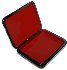 The box is constructed from paper-mache. The exterior of the box is painted with black lacquer while the interior is completed with dark red lacquer. A hinge is fastened to the top of the composition. The box rests on a flat bottom. The work is signed and dated (2010) by the artist.